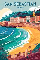 Koop de illustratie San Sebastián, Spanje. van Poster Art Shop op canvas, aluminium dibond, (ingelijste) fotoprint, behang en ArtFrame, op maat geprint in Fine-Art kwaliteit.