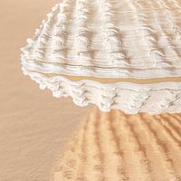 "Sandy pink beach: Schelp weerspiegelt in het oppervlak " is een foto van een mooie schelp waarbij de boven en onderzijde nog aan elkaar zaten toen ik hem vond op het strand. Deze schelp heeft van nature een crème - beige achtige kleur, wat ik prachtig vind matchen bij het beige - (oud- zalm) roze oppervlak. Doordat het grondoppervlak een structuur heeft, is de weerspiegeling de schelp abstract. Het lijkt net of deze is geschilderd in de beige - (oud - zalm)roze ondergrond.
