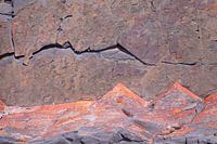 Aan de zuidkust van Cornwall, ligt een stukje strand met veelkleurige, vreemd geformeerde, gelaagde rotsachtige kliffen. In detail ziet dat er zo uit. Hier zit blijkbaar veel ijzer in het mineraal.