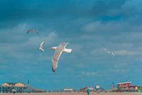 Vliegende meeuwen op het prachtige strand van Sankt Peter-Ording
