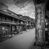Takayama is een schilderachtig stadje in de Japanse Alpen in de prefectuur Gifu. De oude stad Takayama, ook bekend als "Sanmachi Suji", staat bekend om zijn traditionele houten huizen, smalle straatjes en authentieke sfeer die bezoekers meeneemt naar een vervlogen tijdperk. Klassiek uitzicht in zwart-wit.