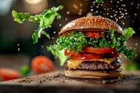 Koop de foto Sappige hamburger van Poster Art Shop als print op canvas, aluminium dibond, (ingelijste) fotoprint, behang en ArtFrame. Voor jou op maat geprint in Fine-Art kwaliteit.