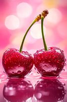 Zoete saamhorigheid bloeit in verfrissend rood! De mollige kersen, bedekt met glinsterende waterdruppels, stralen levensvreugde en frisheid uit. Tegen een zachte, roze achtergrond lijken ze bijna tastbaar. Perfect voor de keuken of eetkamer, dit fruitige motief voegt een pittige noot toe en nodigt je uit om ervan te genieten.