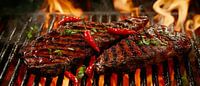 Sappige steaks op de grill met chili van Poster Art Shop