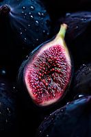 Sappig en verleidelijk ontvouwt zich de aanblik van de rijpe vijg met zijn dieppaarse huid en de sprankelende dauw die het oppervlak siert. De delicate binnenstructuur is een lust voor het oog. Dit fascinerende stilleven brengt niet alleen frisheid, maar ook een uitnodigende sfeer in elke moderne keuken of stijlvolle eetkamer.
