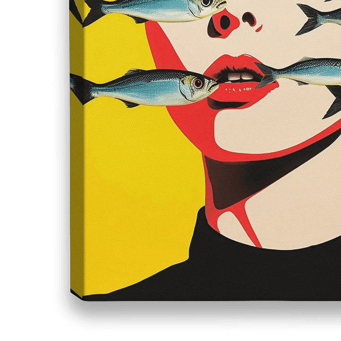 Koop dit moderne kunstwerk Sardientjes in haar gezicht van haroulita op canvas, aluminium dibond, (ingelijste) fotoprint, behang en ArtFrame, op maat geprint in Fine-Art kwaliteit.
