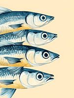 In dit kunstwerk wordt de sardines tot leven gebracht in een mix van vintage kleuren en tinten, die prachtig samensmelten en de zomerse sfeer oproepen.