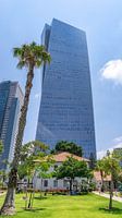 Sarona wijk (historische huisjes met moderne wolkenkrabbers) in Tel Aviv in Israël.