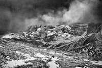 De Sass Pordoi in de Val di Fassa bij Canazei in de Italiaanse Dolomieten.