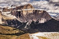 De Sass Pordoi gezien van de Col Rodella in de buurt van de Italiaanse plaats Canazei (Val di Fassa)