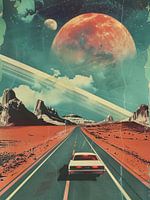 Een Saturnus Highway vintage & retro poster toont een kosmische snelweg door de ruimte, omzoomd met glinsterende sterren en planeten. De kleuren zijn gedempt en warm, waardoor een nostalgische sfeer ontstaat die doet denken aan klassieke sciencefictionfilms uit het verleden. De retro-stijl lettertypen en grafische elementen voegen een vleugje jaren '70 flair toe aan het ontwerp, waardoor een unieke en fascinerende poster ontstaat die de verbeelding prikkelt.