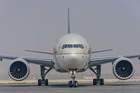 Saudi Arabian Airlines triple seven is net geland op Sakhir Airbase en taxiet naar de static als deelnemer aan de Bahrain International Air Show. Het toestel is voorzien van een speciale livery: Saudi Arabia Famous Landmarks.