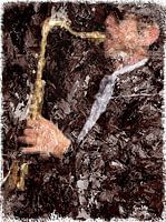 Deze jazzsaxofonist is gemaakt met verschillende laag over laag technieken.