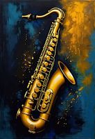 De saxofoon schittert door clair-obscur contrasten, schilderkunstig penseelwerk geeft vorm aan de vloeiende rondingen. Spatten effecten verspreiden zich over de scène als levendige noten die in de lucht springen, vol energie en improvisatie. Schaduwen voegen drama toe, terwijl het licht warmte en verfijning verleent en de soulvolle stem van het instrument oproept. Een fascinerend kunstwerk dat zowel muziek als artisticiteit viert, ideaal voor liefhebbers van ritme en melodie.