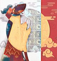 Mixed media collage. Fantasie abstract met Japanse en Chinese elementen