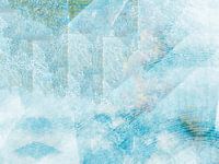Een abstract schilderij van organische geometrische vormen in blauwe kleuren met een impressie van Scandinavische kunst uit Noord-Europa.
