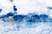 Een abstract schilderij van organische geometrische vormen in expressionistische textuur in goud, wit, indigo, blauw, grijs, koper, warm grijs en beige kleuren met een Scandinavische kunstuitstraling uit het noorden van Europa.
