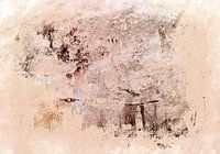 Een abstract schilderij van organische geometrische vormen die expressionistisch vervagen in goud, koper, warm grijs en beige kleuren met een impressie van Scandinavische kunst uit Noord-Europa.
