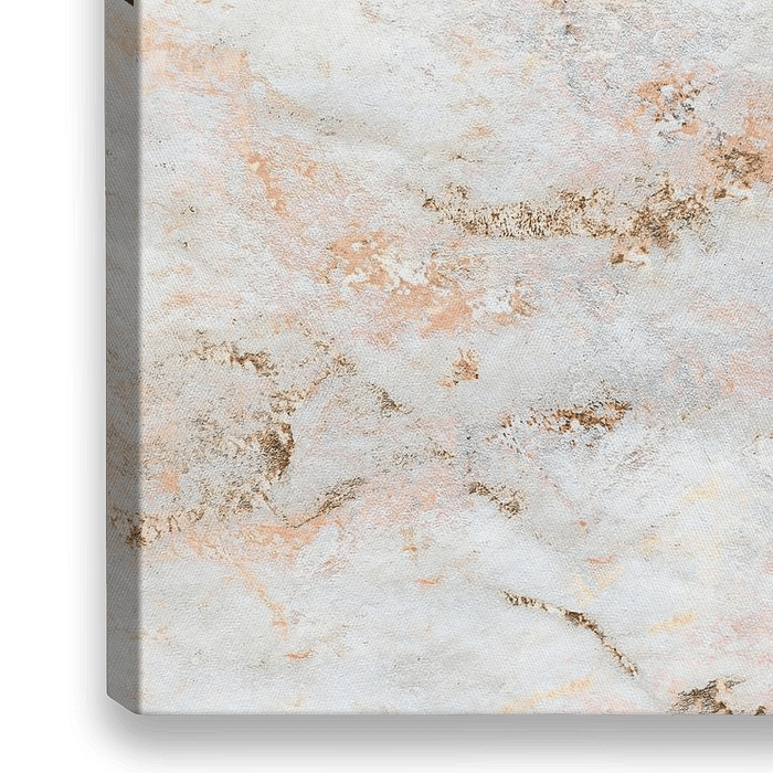 Een abstract schilderij van organische geometrische vormen expressionistisch vervaagd in goud, koper, warm grijs en beige kleuren met een indruk van Scandinavische kunst uit Noord-Europa.