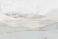 Een abstract schilderij van organische geometrische vormen met een licht expressionistische textuur in de kleuren wit, ivoor, grijs, warm grijs, koper, goud en beige met een impressie van Scandinavische kunst uit Noord-Europa.