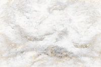 Een abstract schilderij van organische geometrische vormen in goud, grijs, crème, ivoor en beige kleuren met een impressie van Scandinavische kunst uit Noord-Europa.
