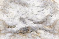Een abstract schilderij van organische geometrische vormen in goud, grijs, crème, ivoor en beige kleuren met een impressie van Scandinavische kunst uit Noord-Europa.