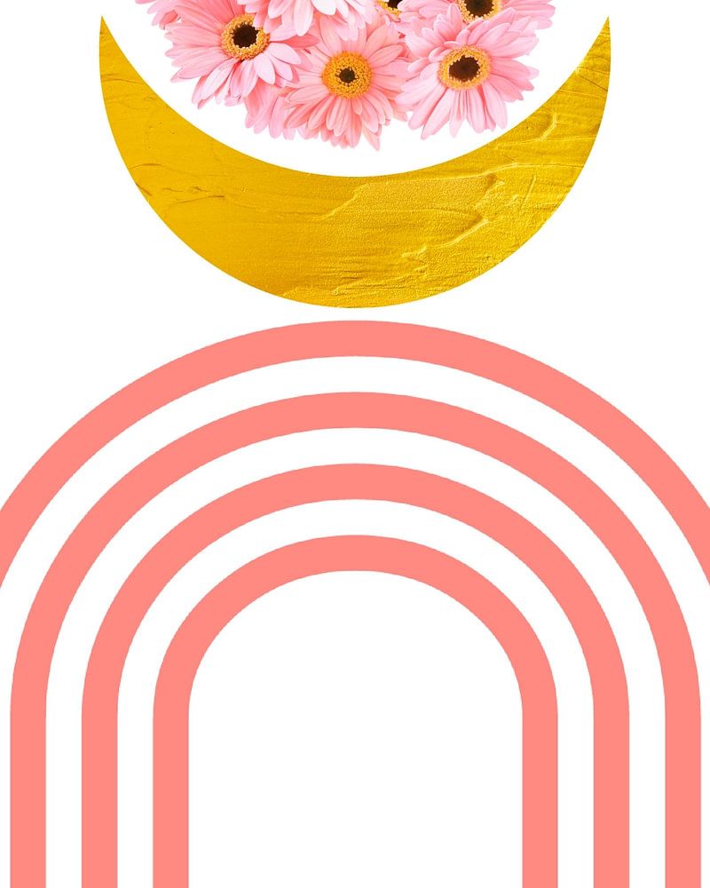 Voeg kunst toe aan je muren en maak er een echt thuis van met dit Scandinavische regenboogkunstwerk met gouden maan.