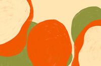 Een abstract schilderij van organische geometrische vormen in mos, gras, groen, ivoor, crème, roest en andere beige kleuren met een impressie van Scandinavische kunst uit Noord-Europa.