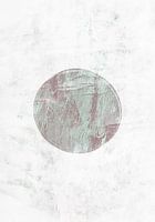 Een abstract schilderij van geometrische cirkelvormen expressionistisch geïnterpreteerd met een indruk van Scandinavische kunst uit Noord-Europa. Zen kunst en Noordse kunst verenigen zich tot kunst in de Japandi stijl.