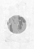 Een abstract schilderij van geometrische cirkelvormen expressionistisch geïnterpreteerd met een indruk van Scandinavische kunst uit Noord-Europa. Zen kunst en Noordse kunst verenigen zich tot kunst in de Japandi stijl.