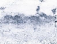 Een abstract schilderij van organische geometrische vormen expressionistisch vervaagd in grijsblauw, warm grijs en beige kleuren met een indruk van Scandinavische kunst uit Noord-Europa.