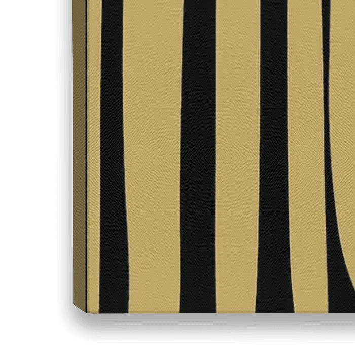 Een Scandinavisch abstract schilderij van geometrische vormen in het populaire XXXL panoramaformaat in oker-goud en zwart.