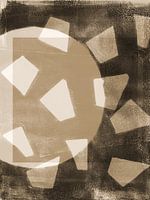 Deze serie abstracte monotypes verkent de stille schoonheid van gelaagde vormen en subtiele texturen. Elk werk is gemaakt met overlappende vormen in aardetinten zoals bruin, beige en gebroken wit, wat de werken een geaard, natuurlijk gevoel geeft. De vormen zijn eenvoudig en geometrisch, maar worden verzacht door het monotype proces, dat diepte en kleine onregelmatigheden toevoegt die elk kunstwerk uniek maken. In plaats van scherpe randen laten de oppervlakken zachte overgangen zien waar kleur en vorm elkaar ontmoeten, waardoor een gevoel van balans en rust ontstaat.