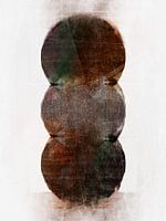 Een abstract schilderij in Scandinavische industriële geometrische vormen op warme aardse kleuren als bruin, beige, crème, goud, koper, oker, kaki, ivoor en middenbruin.