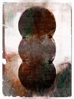 Een abstract schilderij in Scandinavische industriële geometrische vormen op warme aardse kleuren als bruin, beige, crème, goud, koper, oker, kaki, ivoor en middenbruin.