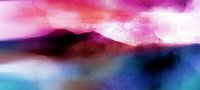 Voeg kunst toe aan je muren en maak er een echt thuis van met dit Scandinavische landschap in minimalistische stijl in magenta, roze, roos, blauw, groenblauw, petrol, geel, crème en pastelkleuren.