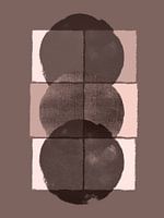 Een abstract schilderij van geometrische vormen in verschillende, fijn gecoördineerde bruinbeige trendkleuren.