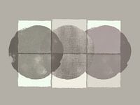 Een abstract schilderij van geometrische vormen in warme aardgrijze kleuren.