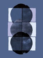 Een abstract schilderij van geometrische vormen op maritieme kleuren als blauw, marine, crème, ivoor en blauwgrijs.