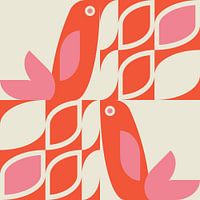 Koop dit vogel kunstwerk Scandinavisch retro. Vogels en bladeren in rood, roze en wit van Dina Dankers als print op canvas, aluminium dibond, (ingelijste) fotoprint, behang en ArtFrame. Voor jou op maat geprint in Fine-Art kwaliteit.