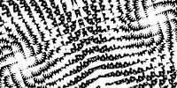 Een Scandinavisch abstract penseelschilderij van geometrische vormen in het populaire XL-panoramaformaat in zwart-wit monochroom.