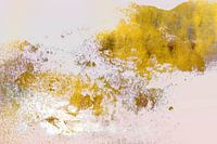Een abstract schilderij van organische geometrische vormen met een licht expressionistische textuur in wit, ivoor, grijs, warm blauwgrijs, indigo, koper, goud en beige kleuren met een impressie van Scandinavische kunst uit Noord-Europa.