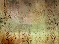 Moderne en abstracte hedendaagse botanische kunst met elegante texturen. Mystiek landschapschilderij met een harmonieus en fantasierijk kleurenpalet. Fantasie en meditatie als inspiratie voor een klassiek schilderij met een eigentijdse trendy touch.