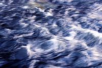Ruisende blauwe rivier, met nevel en golven