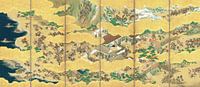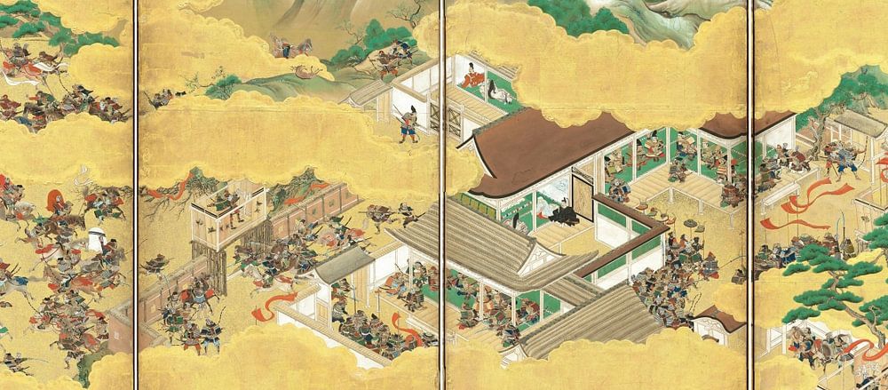 Vouwscherm met ontwerp van de scènes uit "De strijd tussen de clans Genji en Heike", Yūsetsu Kaihō (1677)