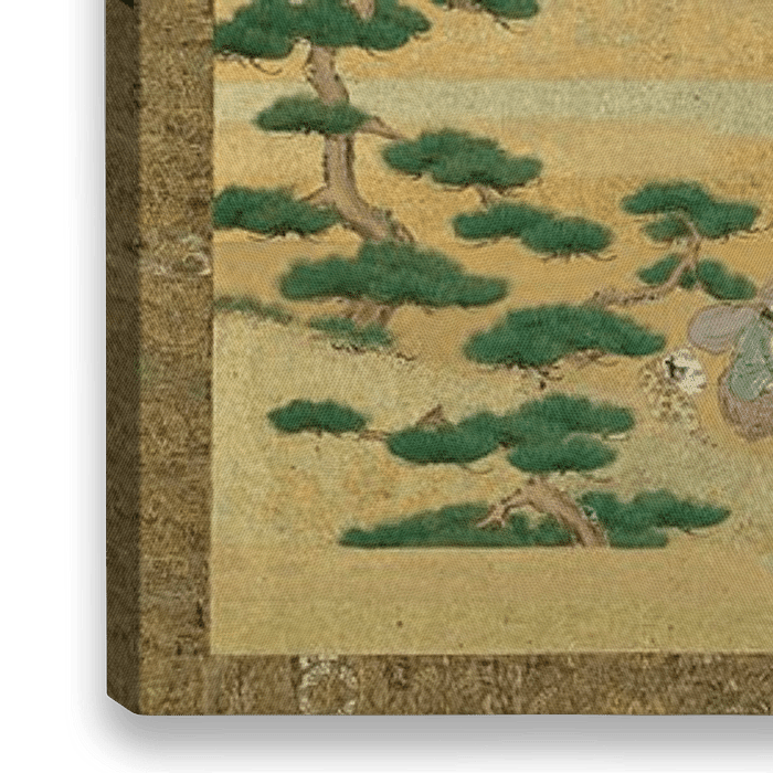 Een van een paar vouwschermen met zes panelen; inkt, kleur, goud en bladgoud op papier