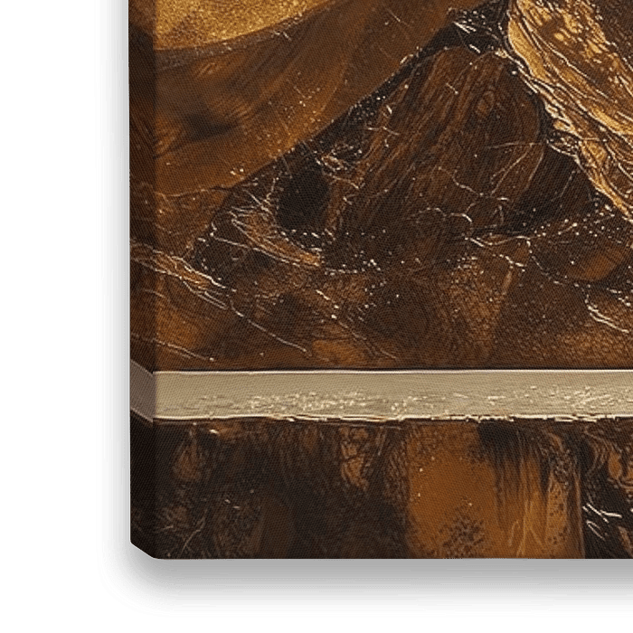 Details: abstract, modern, stilleven, herfst, bergen, maan, goud, aardekleuren, warm