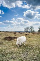 Wolkenluchten boven de zandduinen in nationaal. natuur gebied bij Appelscha. Schaap is aan het grazen voor natuur onderhoud en bescherming van het Hollands landschap.
