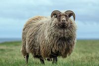 Je ziet een schaap in een weiland in IJsland. Een schaap in IJsland noemt men IJslander. Het is het puurste schapenras dat er op de wereld bestaat.