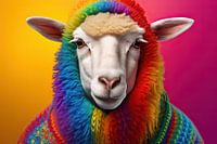 Koop dit portret Schaap in regenboog kleuren van Vlindertuin-Art als print op canvas, aluminium dibond, (ingelijste) fotoprint, behang en ArtFrame. Voor jou op maat geprint in Fine-Art kwaliteit.